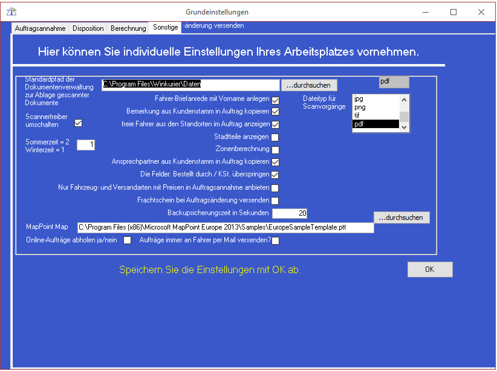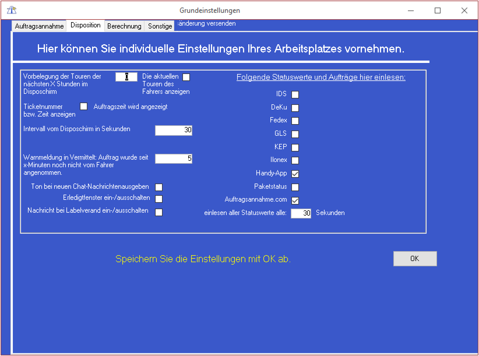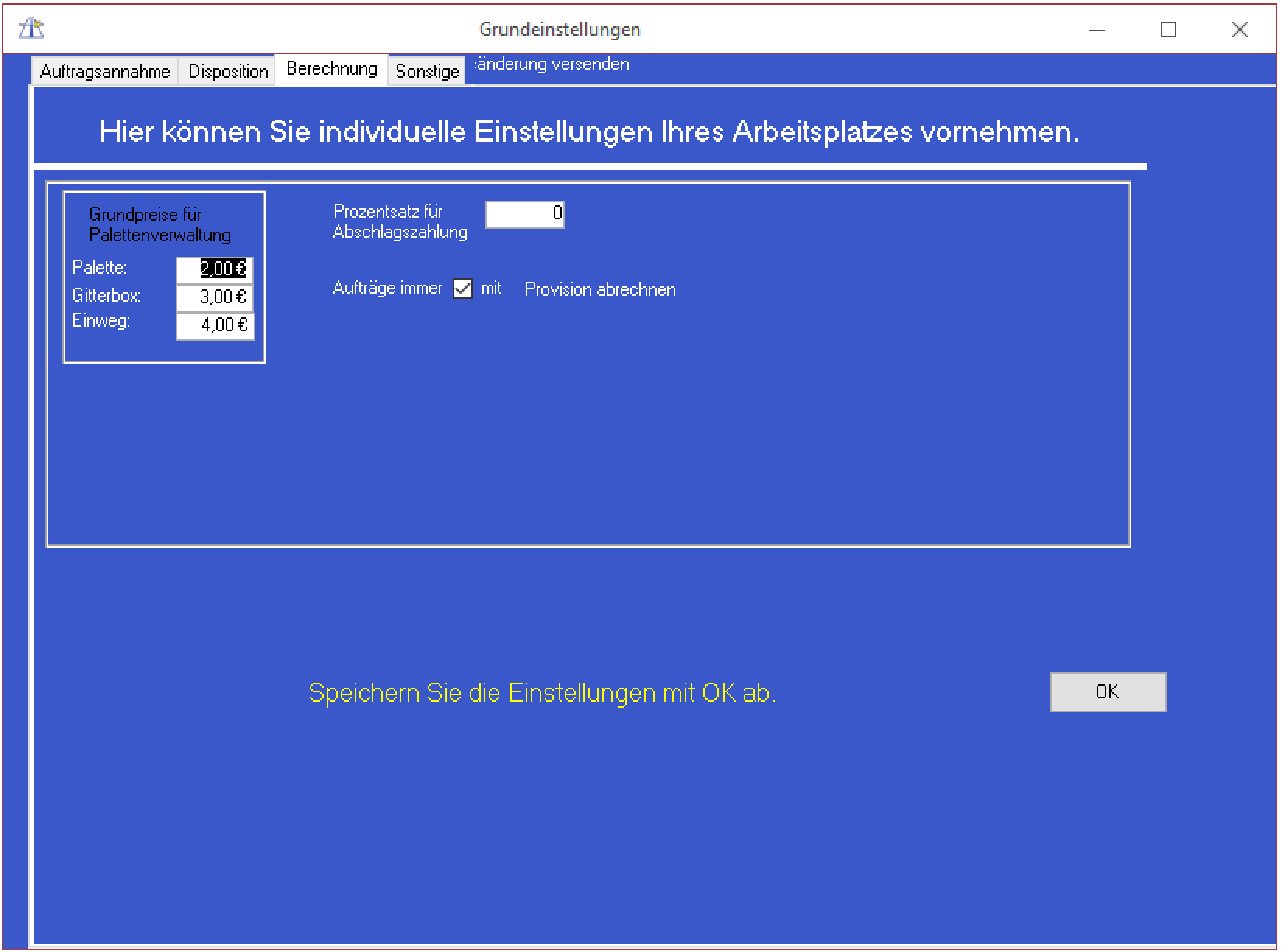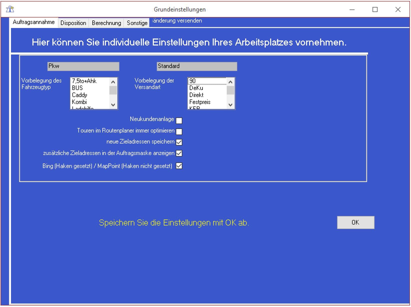 Arbeitsplatzeinstellungen