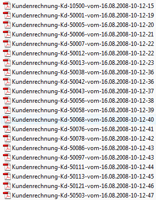 Rechnungsdruck, einzeln als PDF, mit anschliesendem E-Mail versand.